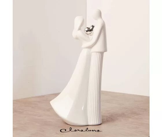 Soprammobile coppia innamorati in piedi bianca, con dettaglio cuore argento.